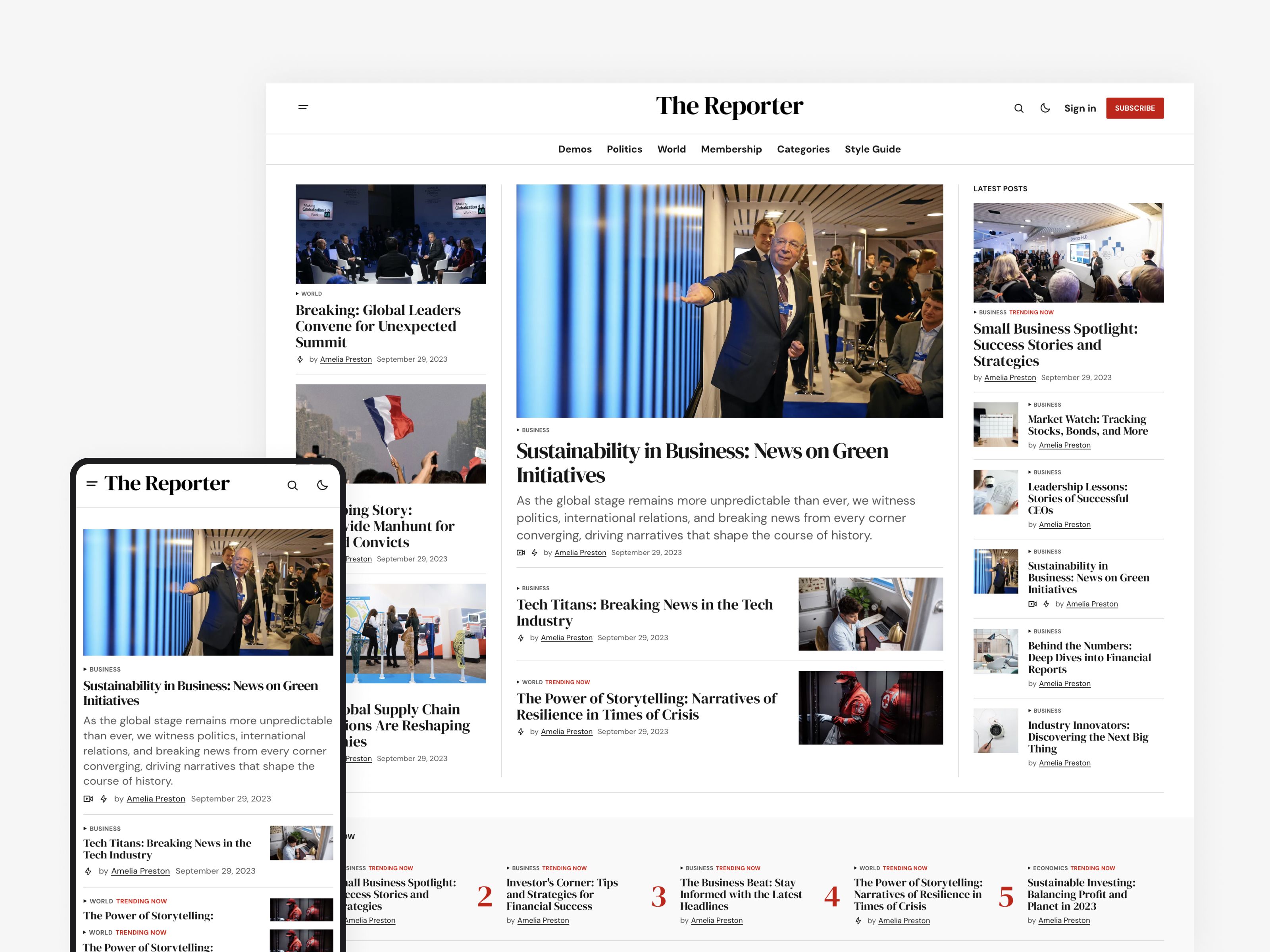 The Reporter delivers news with clarity, showcased in a sleek magazine format. Ghost 6.x compatibleSuper minimal designPower-packed featuresDark mode enabledSkilled expert teamRound-the-clock support